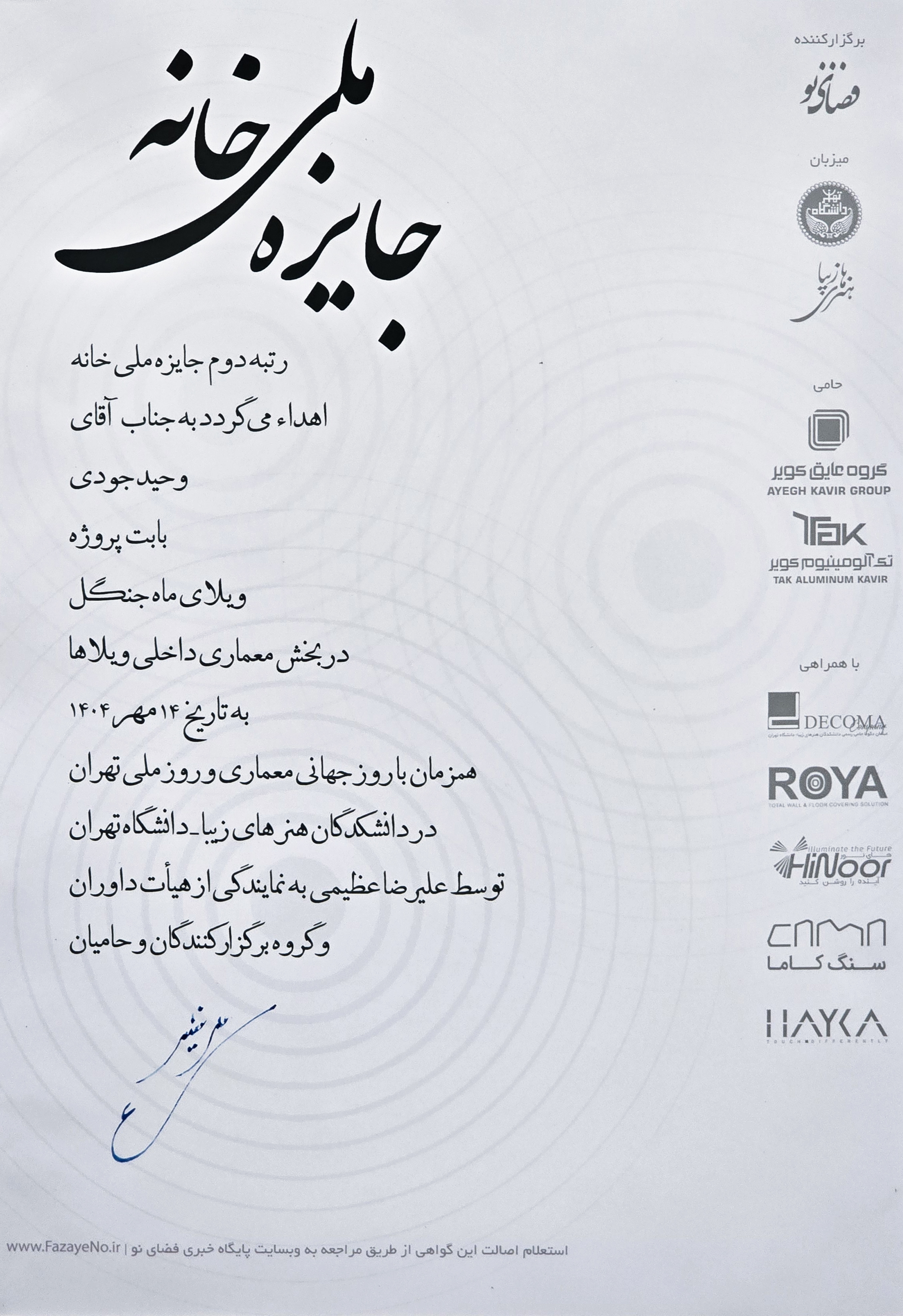 2025 – Second Prize in the Interior Design Category of the House Award 1404 | Iran – Jungle Moon Villa