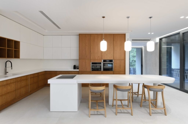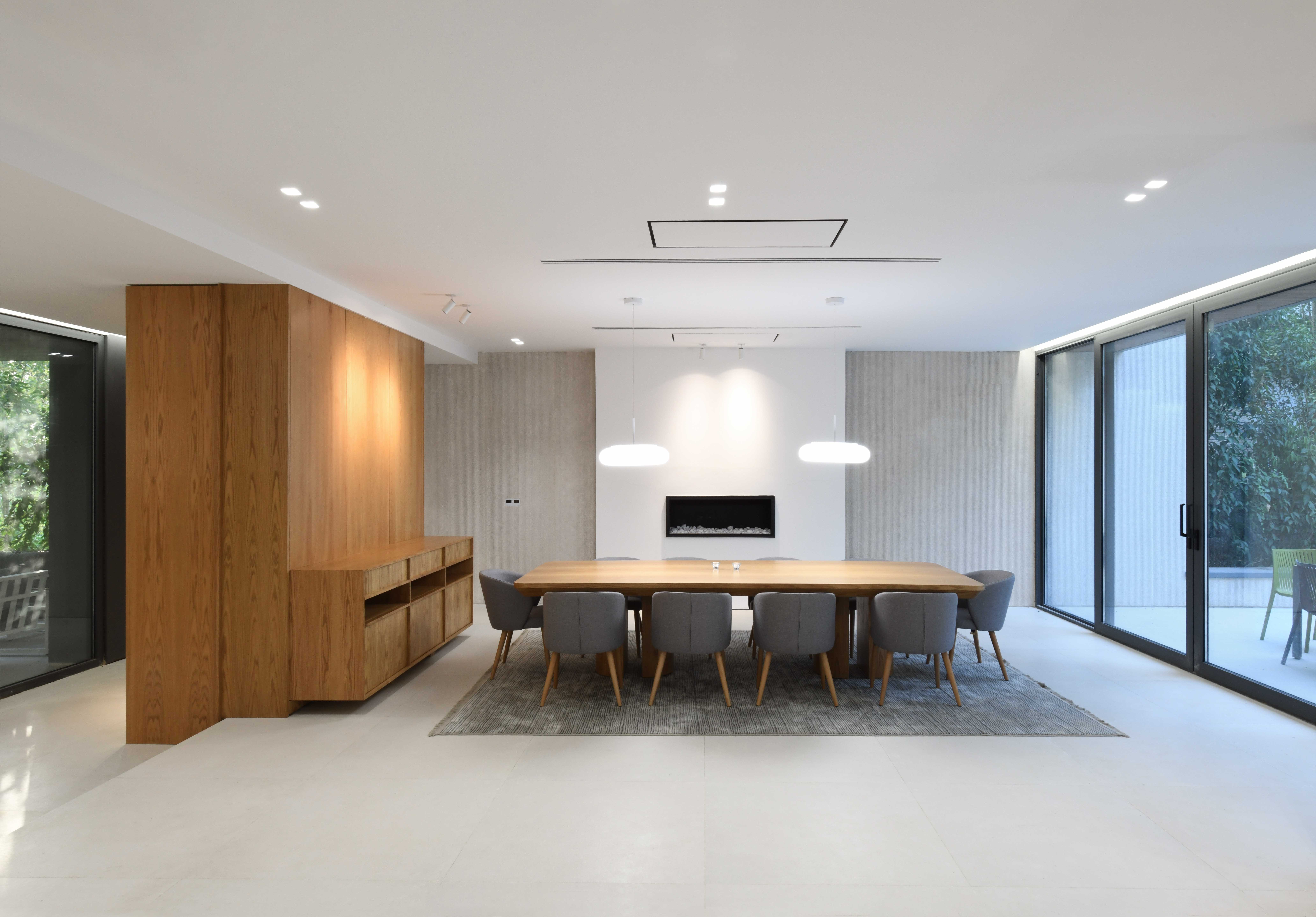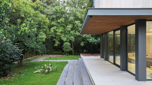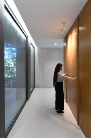 In the new organization, a pronounced entrance and a reconfiguration of the circulation axis brought clarity to the experience of arrival and movement around the villa. Vertical planes on the eastern and western façades, besides controlling neighborhood views and ensuring privacy for terraces, acted as climatic and spatial elements, effectively guiding sightlines and reinforcing the orientation of the volume.