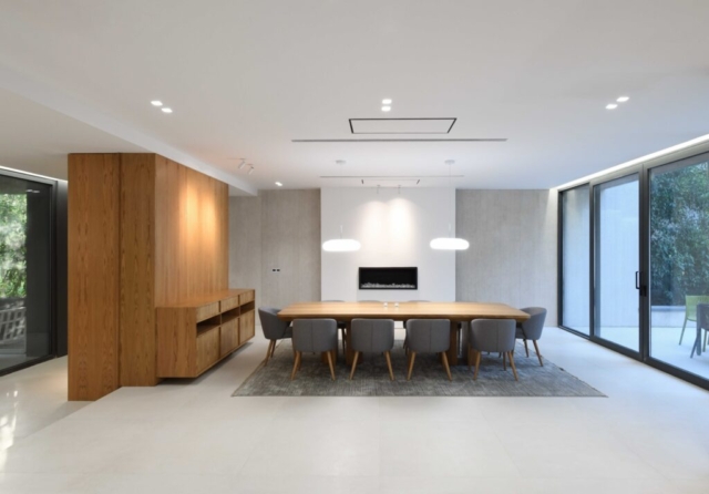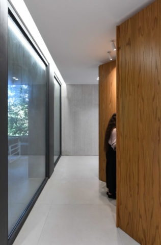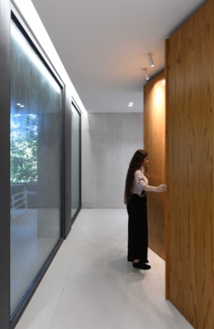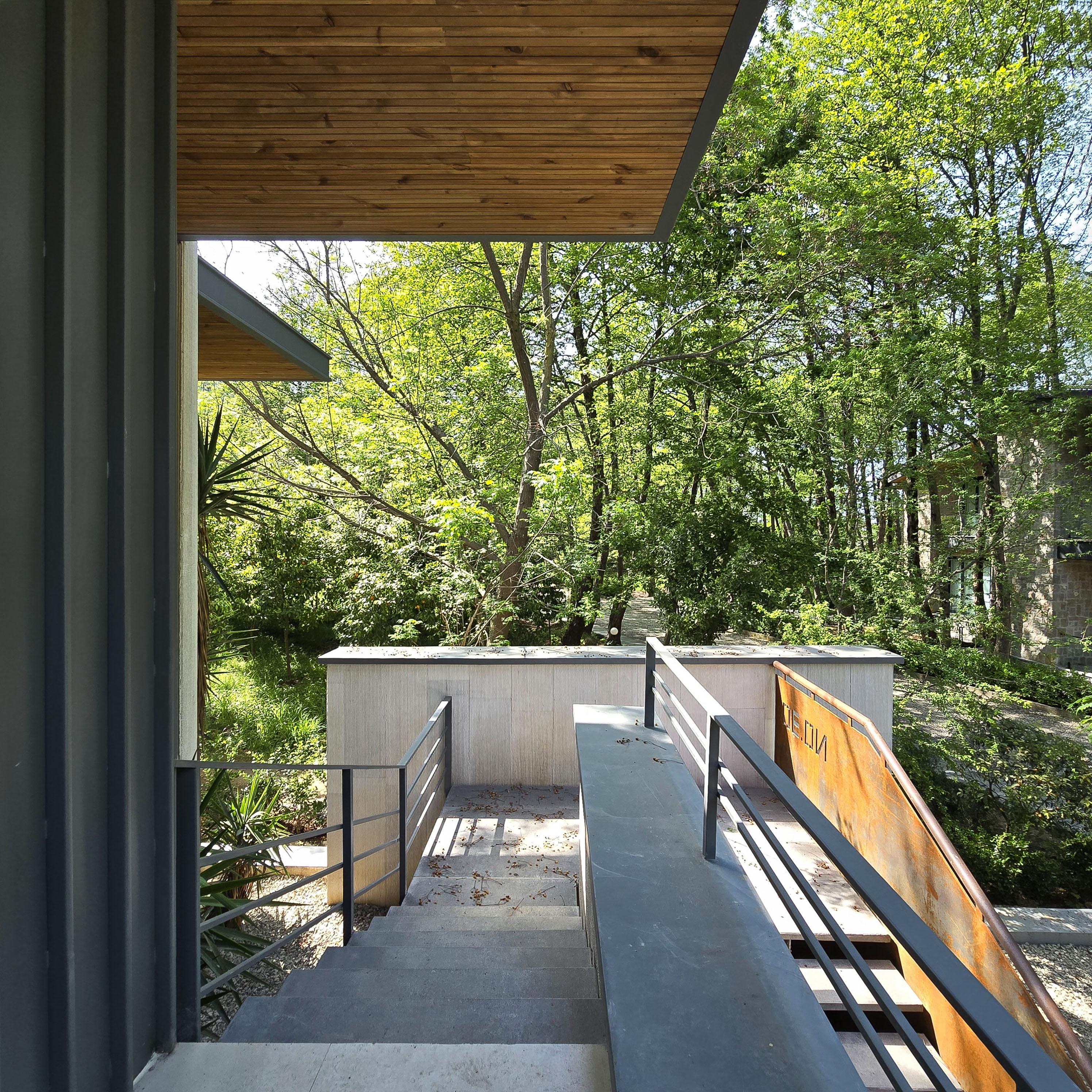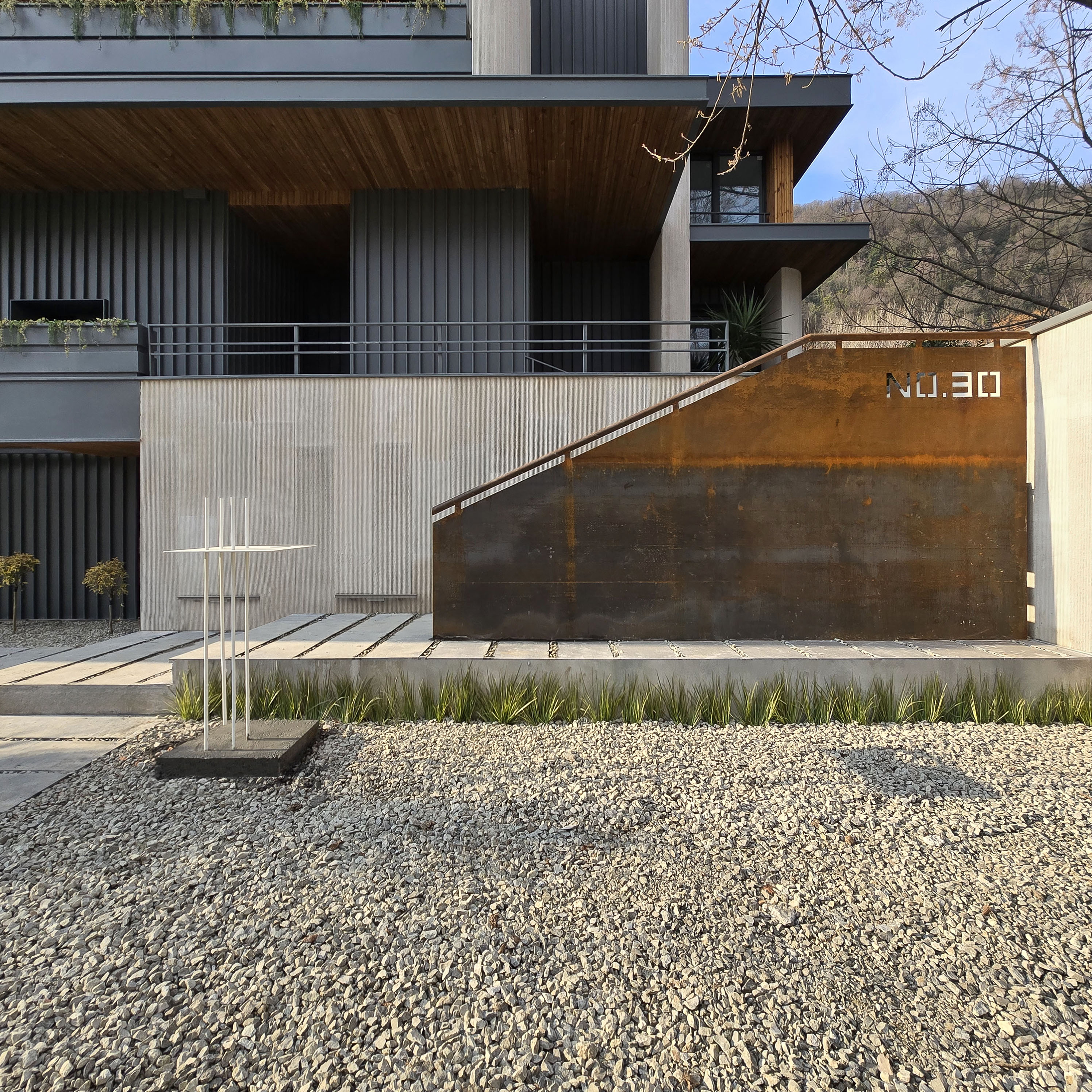 Finally, the choice of natural materials such as wood and stone, set against the contrast of metal and a palette of warm, earthy tones, created an intimate and inviting atmosphere. The use of raw metal at the entrance became an effort to highlight the passage of time and seasonal change; through natural oxidation and transformation of its color, the material itself performs as a living manifestation of time and environmental evolution, binding the experience of entry with a sense of change and natural progression.