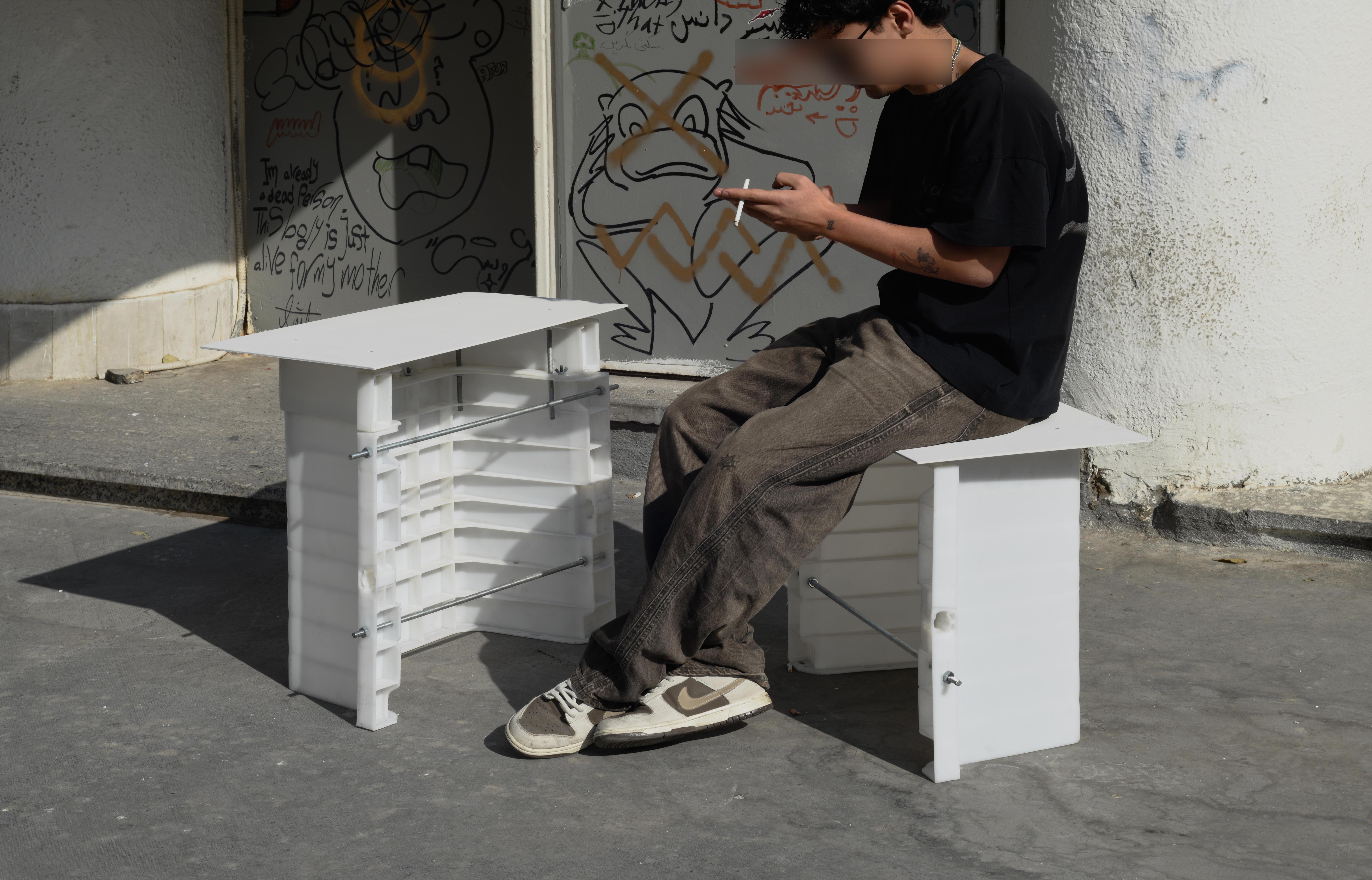 Extending this logic, the project’s conceptual foundation lies in a form of post-industrial reprogramming a process through which an element engineered for structural logic is extracted from its purely technical context and redefined as a micro-architecture for rest and interaction. The addition of a four-millimeter anodized aluminum plate, fastened by an M3 bolt-and-nut system, is not merely a structural detail but a deliberate tectonic gesture. Through this assemblage, the chair becomes a hybrid construct operating at the intersection of permanence and temporality, industrial precision and the poetic materiality of reclaimed components forming a layered dialogue that expands beyond function.